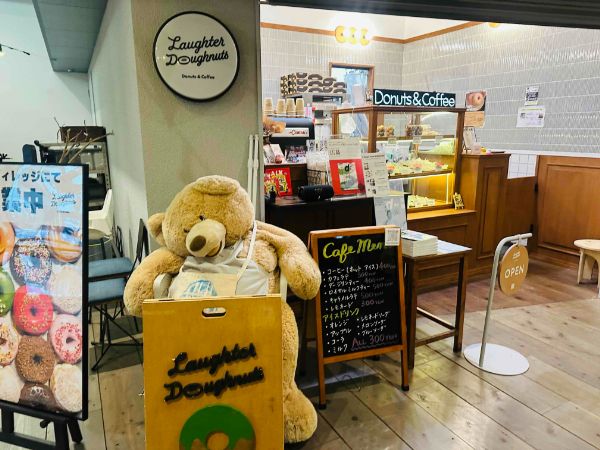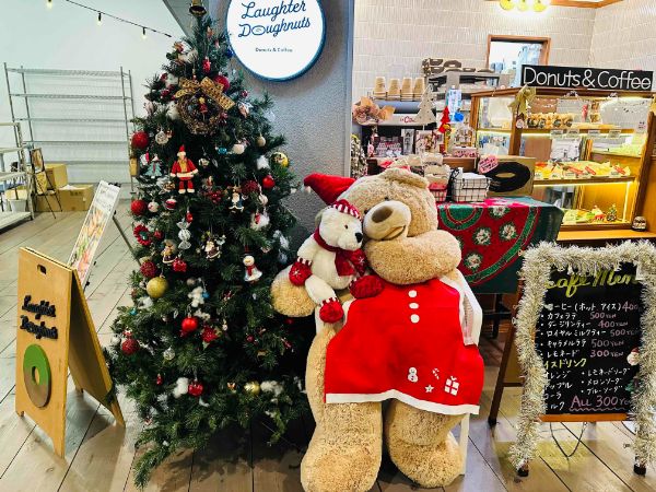お店の前には大きなくまのぬいぐるみがあり、クリスマスの時期にはサンタ姿になるなど、季節ごとに楽しめる演出も魅力です。