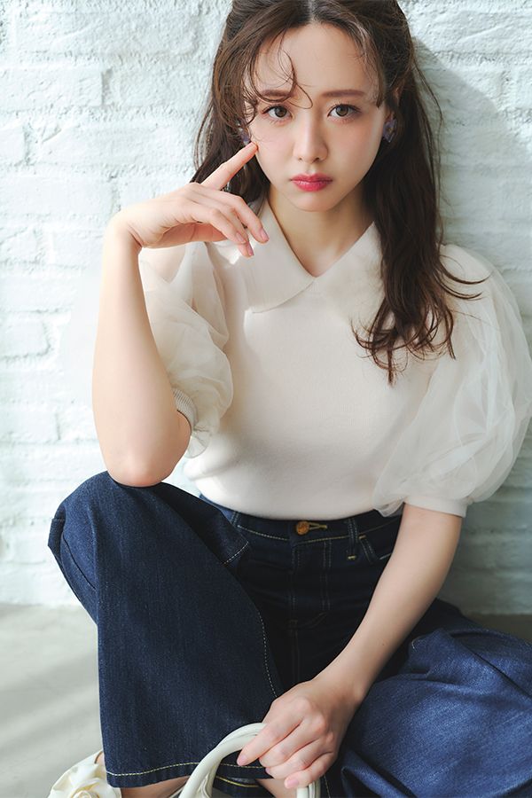 [香澄]ガーリーなバルーン袖ニットを、インディゴデニムで引き算
