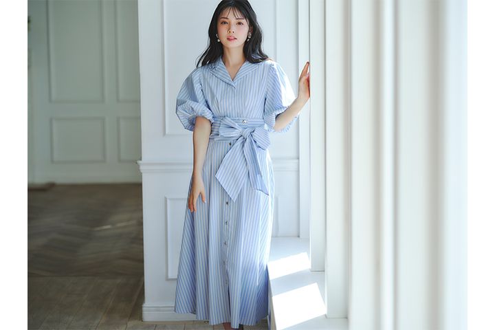 きゅっと結んだリボンベルトが作り出すフィット&フレアラインや、ほどよくボリュームを持たせたパフスリーブが着映え感抜群のシャツワンピース。クリーンで涼しげなサックスストライプは全方位ウケ間違いナシ♡