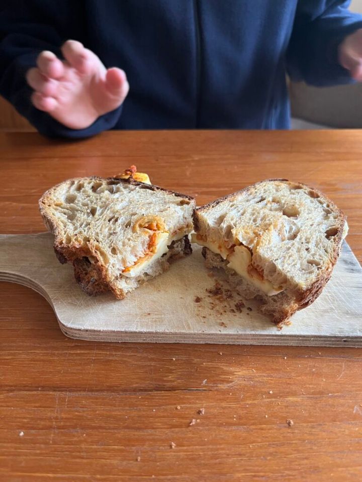 友人のスタジオで一緒にお昼を食べた時に、パンとハムとチーズを買ってきた袋のまま持ってきてその場でパンにバターやフムスを塗り具材を挟んで食べていて。楽だし、おいしいし、最高だなと思い、真似してその適当スタイルのランチで済ませていました。