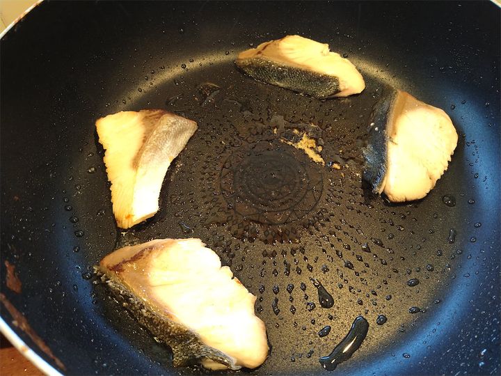 3. フライパンに油を引いて熱したら、ぶりを入れて両面を焼く。