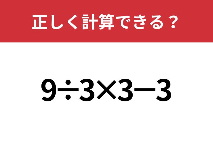 どこから計算するのが正解!?「9÷3×3−3」正しく計算できる?