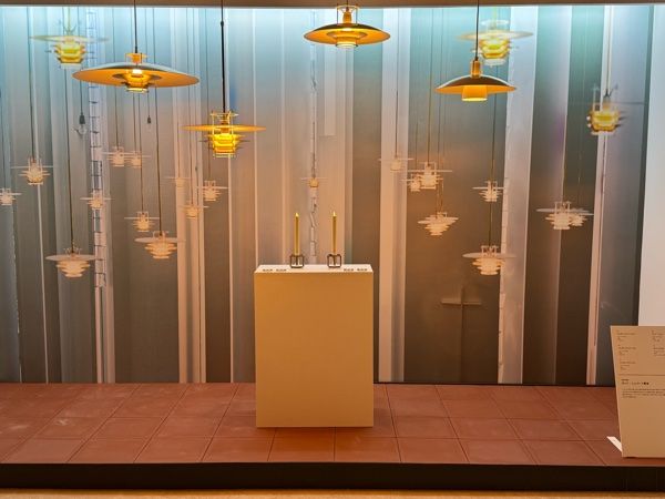 北欧では建築をつくるときに、家具や照明など環境にあるもの全てをトータルにデザインする志向があります。 「光と音の建築家」と称されるユハ・レイヴィスカの美しい教会建築など、建築物とともにあるあかりも展示されています。