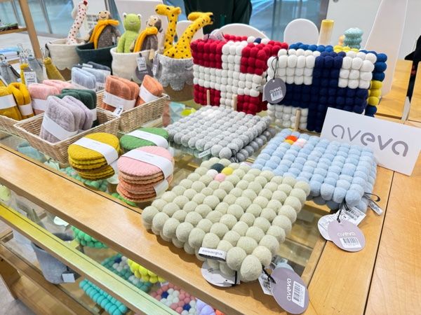 オリジナルショップでは、北欧のオリジナル雑貨が販売されています。同じ雑貨でも日本では珍しい羊毛フエルト素材の鍋敷きやお洒落なデザインの雑貨が販売されています。