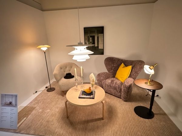 ヒュッゲ(Hygge)とは、デンマーク語で「居心地がいい空間」や「楽しい時間」のことを指します。展覧会場はヒュッゲな照明とインテリアでコーディートされたお洒落なショールームの様な空間です。