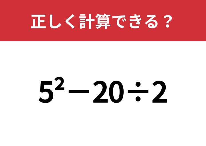 「5^2−20÷2」正しく計算できる?