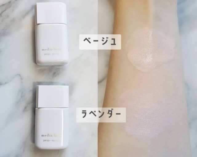 ▲カネボウ「メディアリュクス スムースビューティーベース」 全2色 SPF50+PA++++ ¥1,540(税込)。血色感アップには「ベージュ」、透明感を引き上げたい方には白浮きしない「ラベンダー」がおすすめ