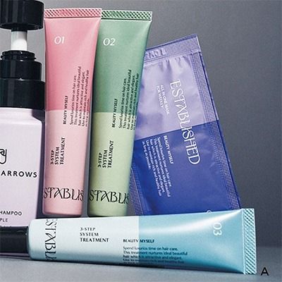 システムトリートメント(月1回の3STEPトリートメント2回分[30g×各1本]、週1回の集中ヘアマスク8回分[10g×8包]) 4,620円/エスタブリッシュ “サロンメニューを誰でも自宅で簡単に”がコンセプトのホームケア用システムトリートメント。24種類の毛髪補修成分を配合した月1回のトリートメントと週に1度のヘアマスクの併用により、パサつきや広がり、うねりなどをケア。