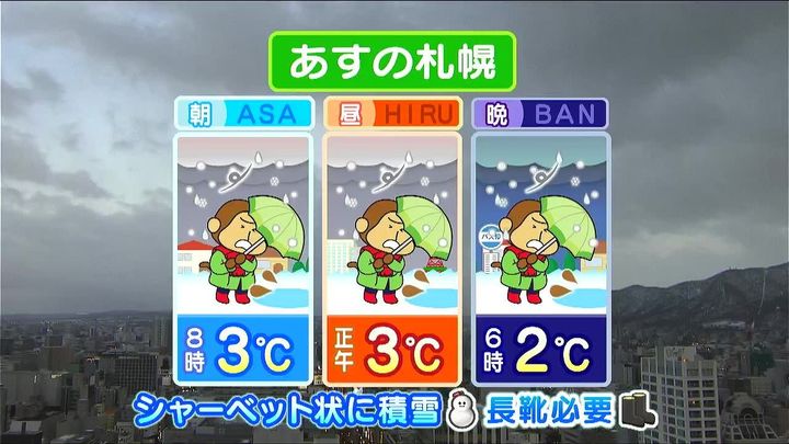 あすの札幌です!朝昼晩の天気をもんすけでお伝えします!