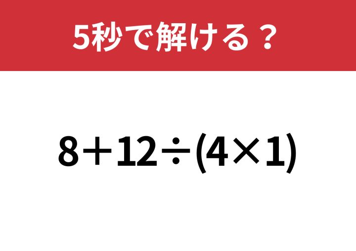 大人でも解けない人が多いかも?「8+12÷(4×1)」5秒で解ける?
