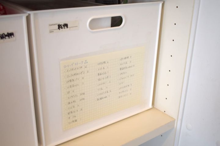 古いものが手前に来るように並べておき、さらに必要量のメモを貼って少なくなったらすぐわかるようにしておく方法がおすすめです。