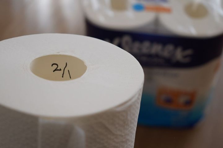 例えば、トイレットペーパーの芯に使い始めの日付けを書き込み、使い切ったのは何日後か把握します。