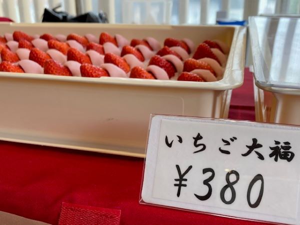 しかもお値段、なんと!「苺大福」1個 380円(税込)。苺の価格も高騰しているなか、やっ安すぎるのでは・・?と思ったのですが「お客さまの為に。」ということで、ぎりぎりの値段設定をしてくださっているそうです。これはもう、感謝しかありません!!