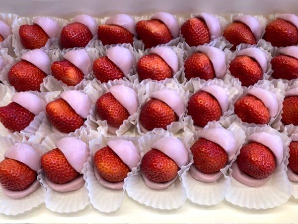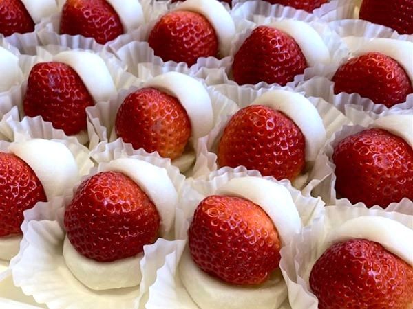 「苺大福」は苺の旬(4月ごろ)までの季節限定商品ですので、このジューシーな苺と柔らかい大福餅が奏でる絶妙な味わいの「苺大福」を堪能されたい方は、ぜひお店にお急ぎください!