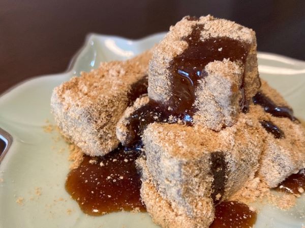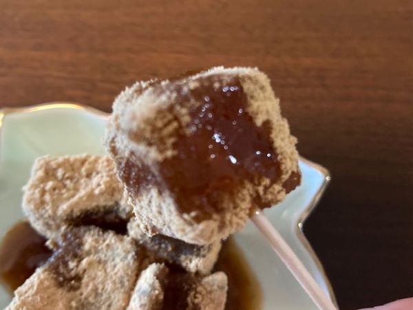 濃厚な黒蜜に覆われて「本わらび餅」の表面はしっとりとしているのですが、その分「本わらび餅」のぷるんぷるん♪とした弾力をより感じることができた気がします!うん、これはこれで良い。味変、サイコー!!ですね(^^♪