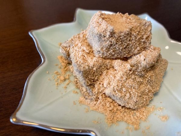 その時「本わらび餅」にまぶされていたきな粉がとてもいい役割を果たしていたので、きな粉について平岡さんにお尋ねしたところ「炒った大豆のみで作られたきな粉なので、本わらび餅に使われている和三盆の味わいがより引き立っていると思います!」ということでした。これには納得です!!