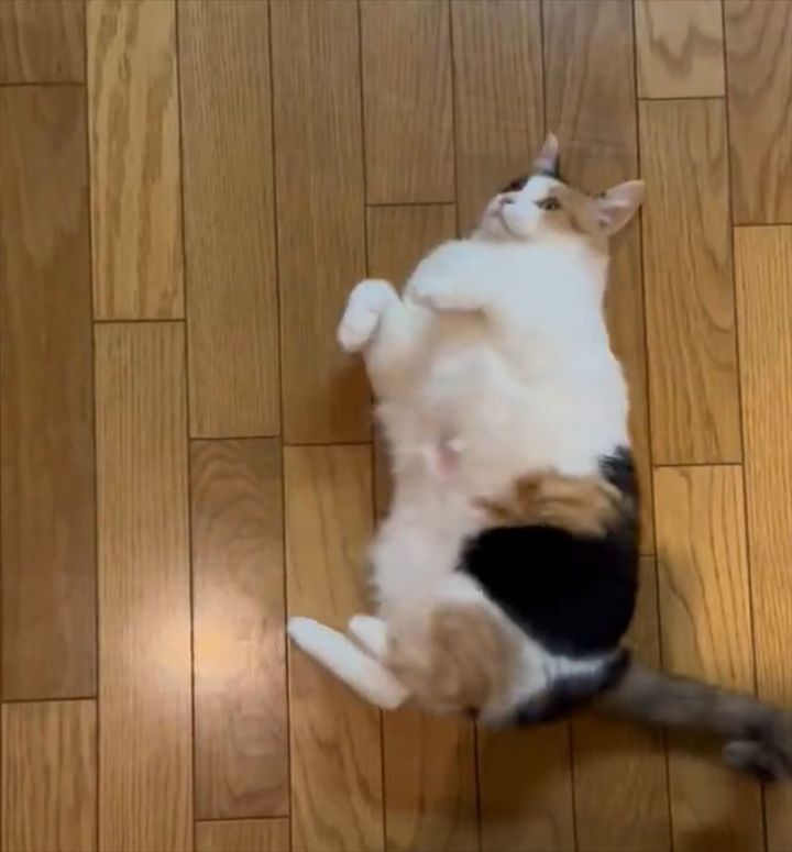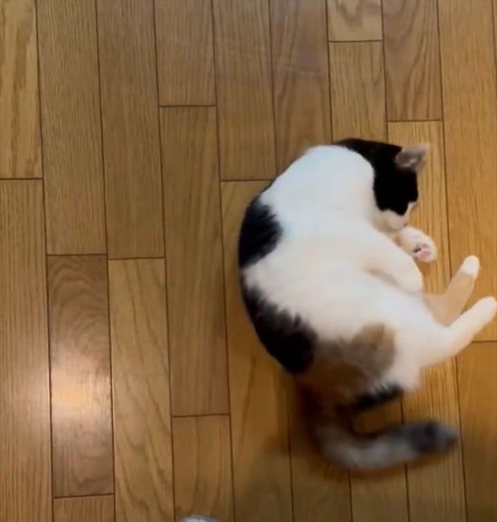 緩急ある動きを見せてくれたネコ。 ゆっくり転がっていたかと思えば、素早くパッと起き上がったのです。