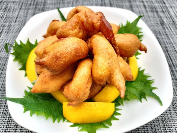 菰田シェフがYouTubeで説明していましたが、酥炸は衣がサクッとした揚げ物のことを言います。蝦仁はエビのことですので、酥炸蝦仁は衣がサクッとしたエビの揚げ物という意味になり、まさにフリッターそのものです。つまめるように小さめのエビを使う料理ですが、食べてみると大きなエビでもおいしいのでは?と思いましたし、用意するエビの量によっては衣が余ります。今回も実際衣が余りましたので、一口大に切ったソーセージやプロセスチーズにつけて揚げてみたらとてもおいしく頂けました。考えてみるとソーセージですから、小さいですがアメリカンドッグですよね。