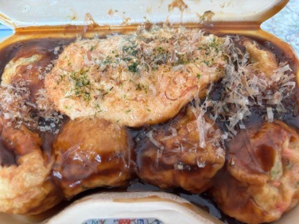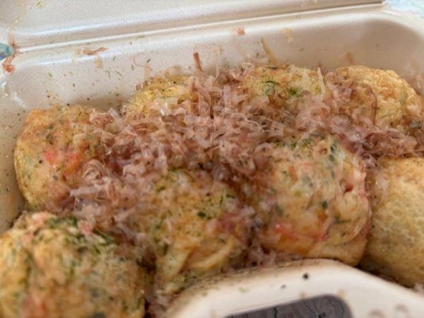羅臼産たらこマヨたこ焼き 8個(799円)たらこマヨにたっぷりのソース!30分程経過してしまったので、ぽよぽよですが・・。