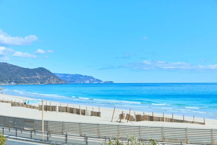 ホテルから見える青い海と白い砂浜のコントラストは圧巻! その他にも近隣には「外浦」「九十浜」「鍋田浜」「多々戸浜」「入田浜」「吉佐美大浜」「田牛」などの最高ランクの水質を誇る、透明度抜群の海水浴場も。 夏の海水浴はもちろん、オフシーズンでも非日常感が味わえる唯一無二の場所です。