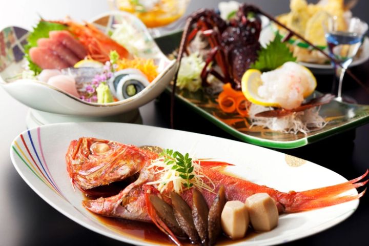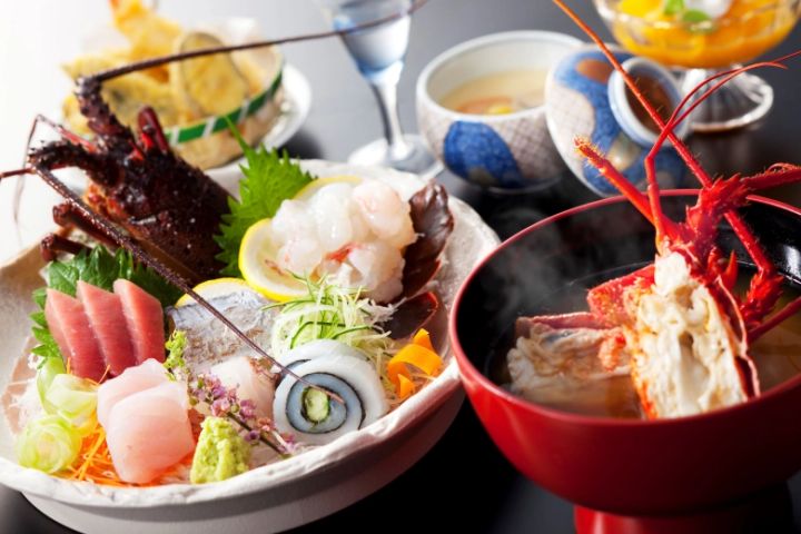 そして、何と言っても食事の豪華さは下田ならでは!夕飯では新鮮な伊勢海老やお刺身、金目鯛などの海の幸&山の幸を使った自慢の会席料理が味わえます。