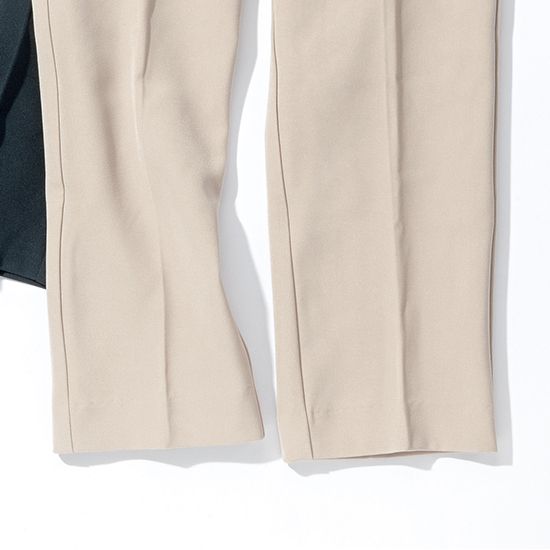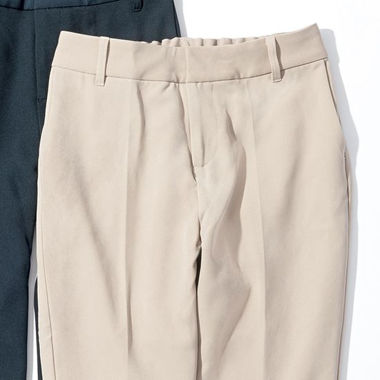 センタープレスが美しく入ったテーパードパンツは、履くだけで美脚効果抜群。すっきりとしたシルエットながら、ストレッチ性が高く、動きやすさも兼ね備えた一本です。フォーマルにもカジュアルなトップスと合わせてデイリー使いにも、シーンを選ばず着回せます。学校行事、オフィス、休日までフル活躍してくれる万能パンツは、ワードローブに加えておきたいアイテム。