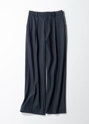 動きやすさやこなれ感を重視するならパンツ派の方におすすめの着回しコーデをピックアップ。今回はユニクロの『タックワイドパンツ(ネイビー)』でオンオフ問わず使える洗練された着こなに仕上げました。ハイウエスト設計で脚長効果がありながらもタック入りで腰回りをスッキリ見せてくれるのが魅力です。合わせ方次第で表情が変わる「高見えユニクロスタイル」を楽しんでくださいね。