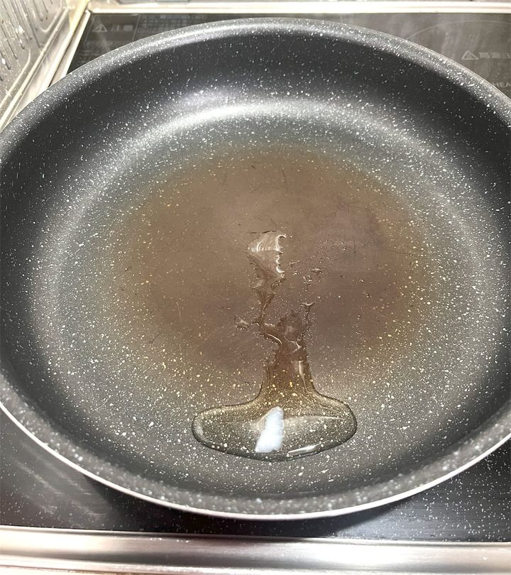 フライパンに火をつけ、ラードを入れて溶かします。