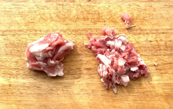 豚肉を下のように小さく刻みます。