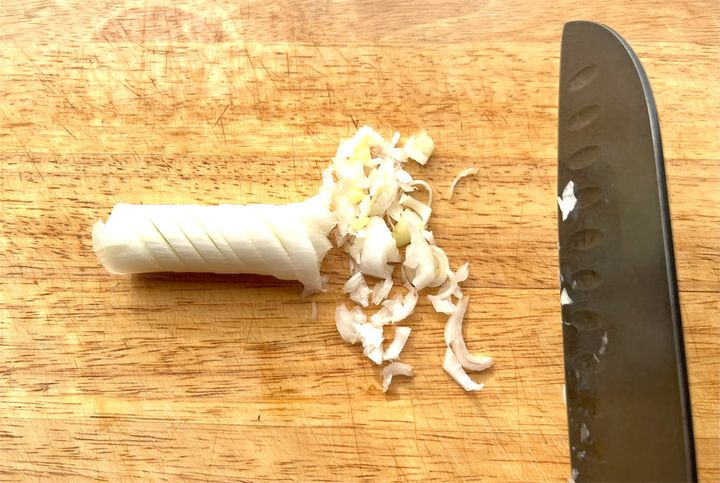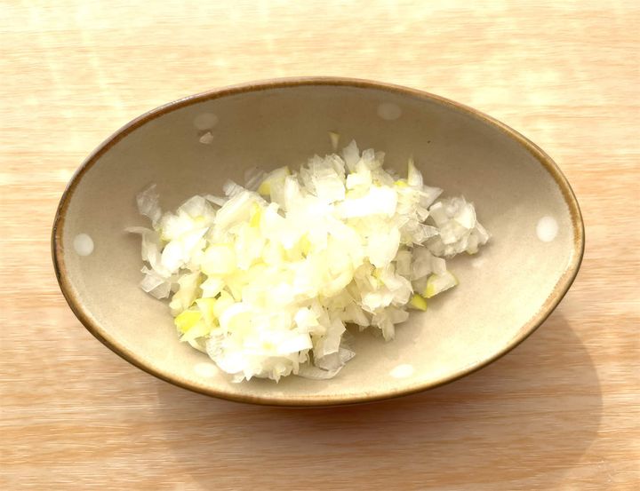 1. 長ねぎをみじん切りにします。