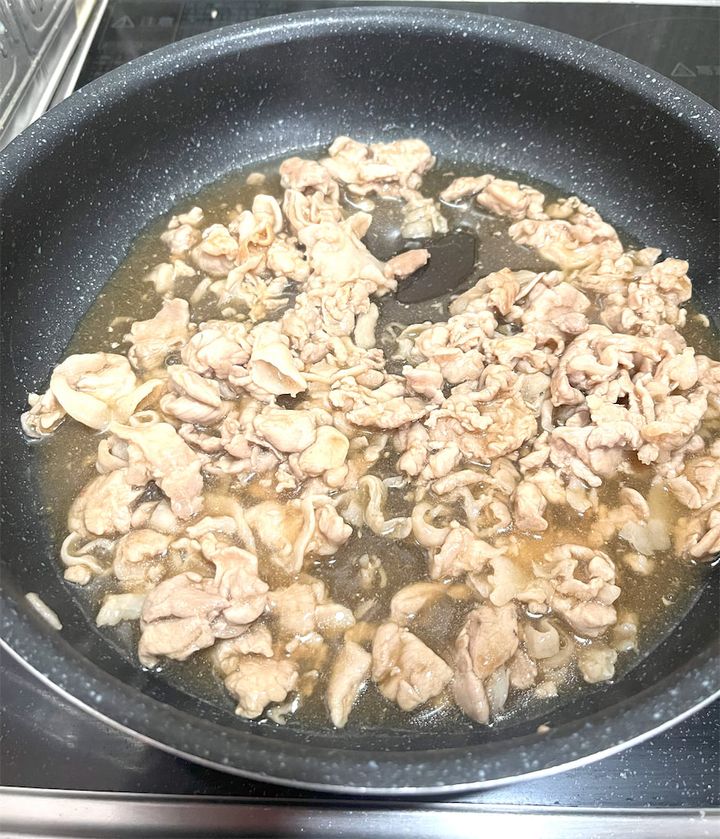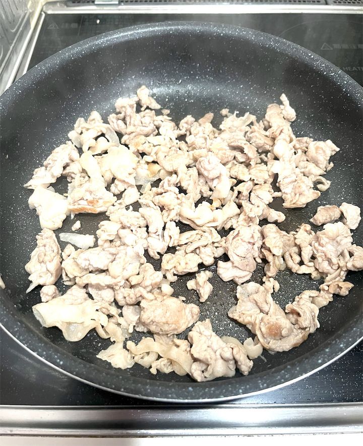 2. 豚肉を炒めます。