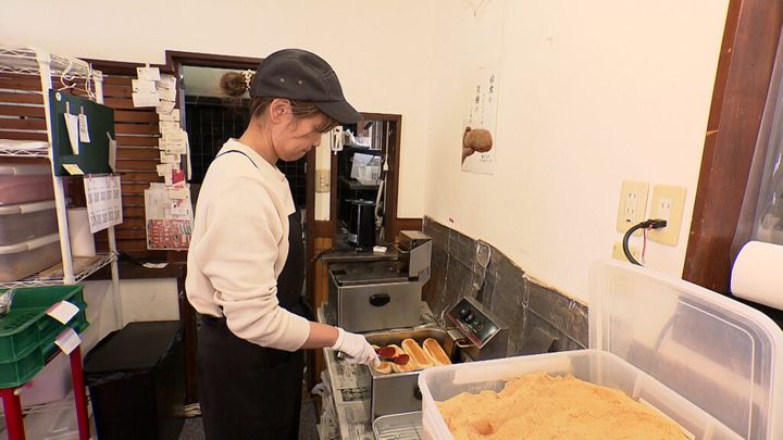 兵庫県内に8店舗を展開するかずよさんは「できれば揚げたてを食べてほしい。揚げたてが一番おいしい」とそれぞれの店を回り、自らも揚げパンを作ります。揚げパンを懐かしむ世代をはじめ、知らない世代の間でも評判となり、どの店舗も行列ができるほどになりました。お客さんを飽きさせないよう、定期的に新作を発表し、春をイメージした桜餅の揚げパンも試作中です。