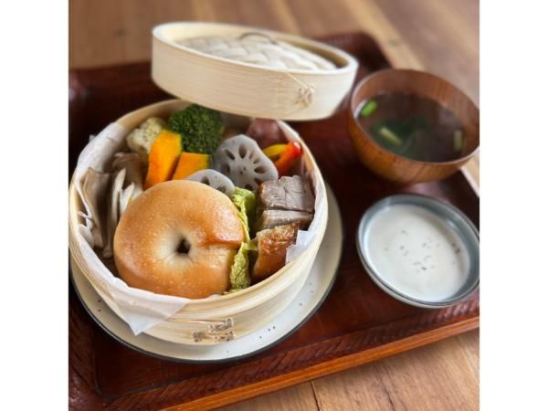 季節の麹ベーグルと地場野菜のセット 麹バーニャカウダーソース Instagramより