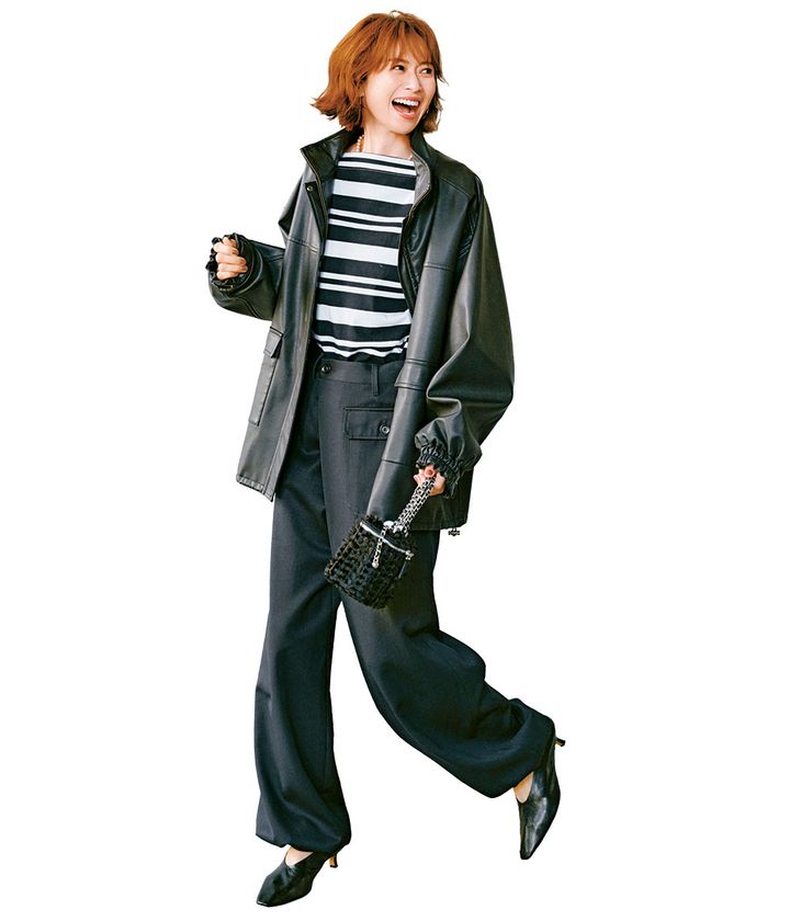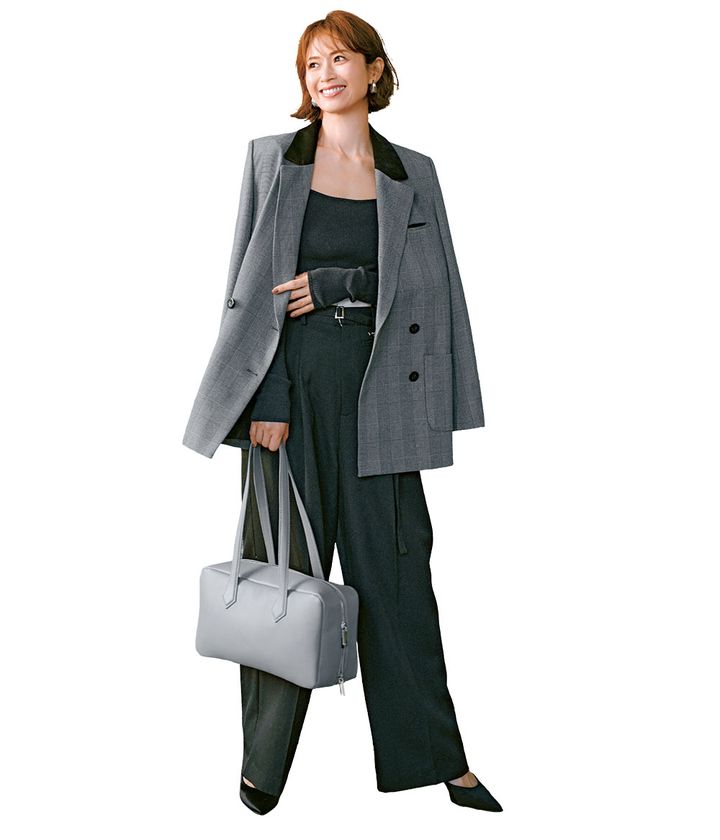 ジャケット¥30,800(カデュネ)トップス¥22,000(オペラスポーツ/サードマガジン)パンツ¥28,600(プランクプロジェクト/プランクプロジェクト 青山店)バッグ¥40,700(コムサ/ファイブフォックス カスマターサービス)パンプス¥51,700(カチム)ピアス¥13,200(ダブルスタンダードクロージング/フィルム)