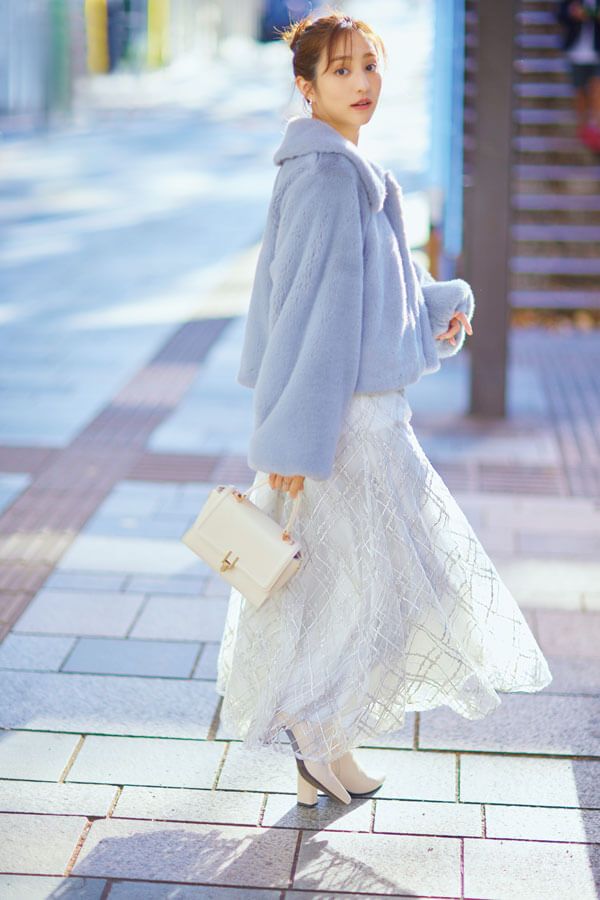 ファーアウターの量感を白スカートの透明感で緩和♡