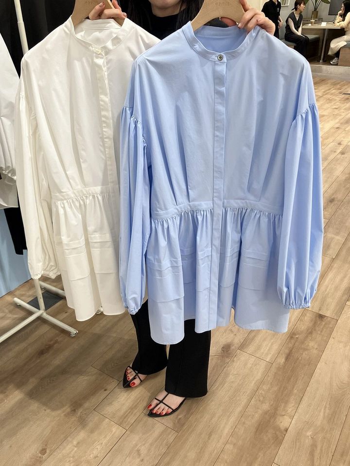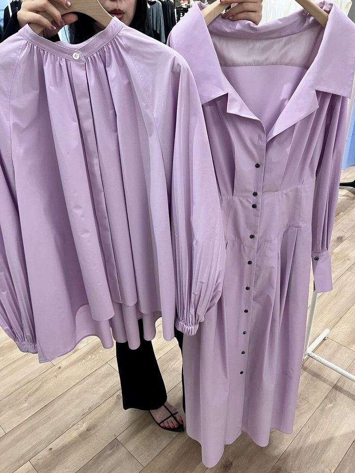 大人が気兼ねなく着られる絶妙なスモーキーピンクのワンピースやブラウスは春夏に向けてぜひチェックしてほしいアイテム。ワンピースはいさぎよくデコルテを見せてすっきり細見えが叶います。爽やかなサックスブルーもお顔が明るくなり、ぜひ挑戦したいカラーです!