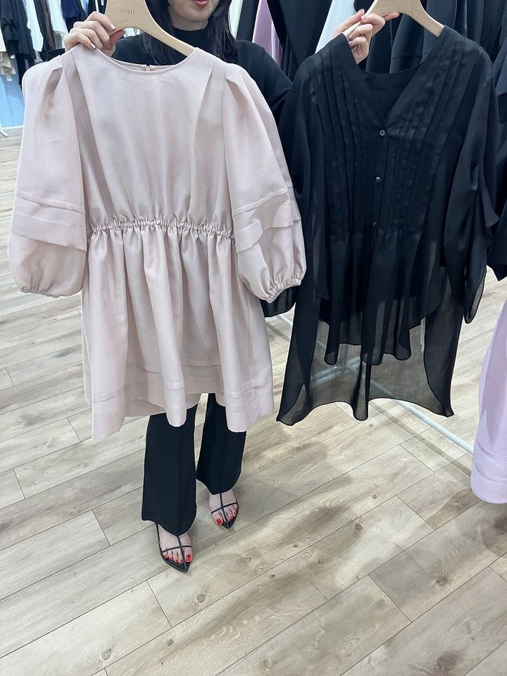 左ピンクブラウス¥34,100 右シアー黒ブラウス¥36,300