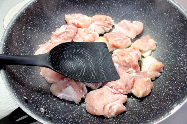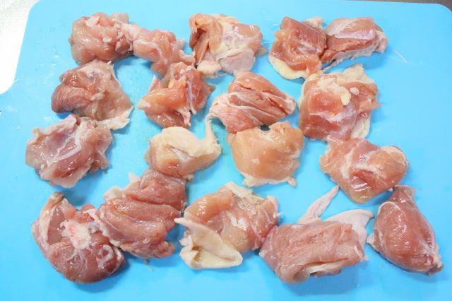 2. 鶏肉をひと口サイズに切ります。