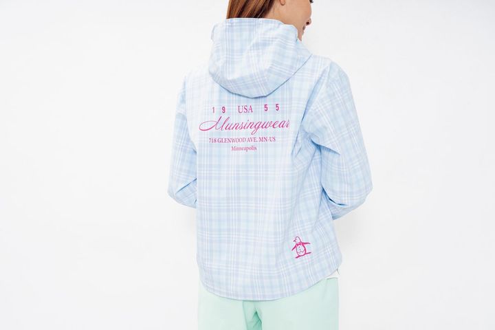 ブルゾンはフードつきで、背部にクラシカルなフォントのロゴアクセントがきいている。ペンギンアイコンも、可愛くアピール。