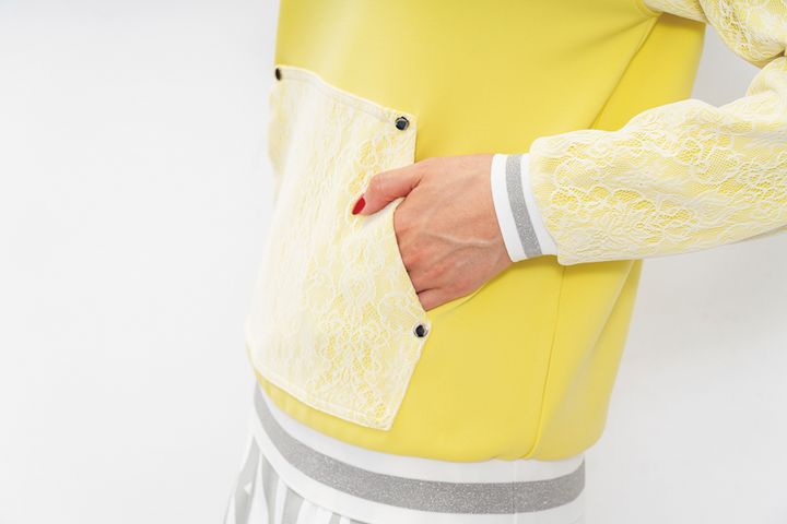 ポケットとスリーブがレースになった、一枚で華やぐプルオーバー。ほどよく女らしさとスポーティさが両立し、着こなしの幅を広げる。