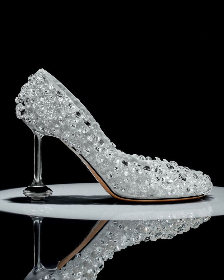 また、プリンス・オブ・ウェールズのチェック柄のモヘア生地に薄いメタルシートを貼り、その上にプリントを施したコートや、1000〜1400個のクリスタルをあしらったシューズなど、技巧を凝らしたアイテムに目が眩む。