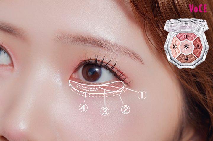 3:③+④を手の甲でブレンドし、キワにラインのようにのせる