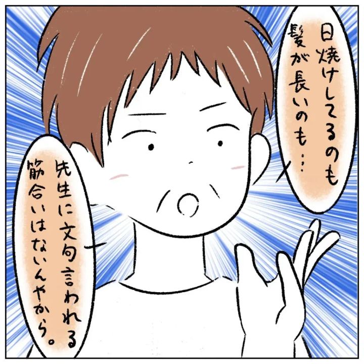 「日焼けしてるのも髪が長いのも・・・先生に文句言われる筋合いはないんやから。」お母さんはきっぱりと言い切りました。