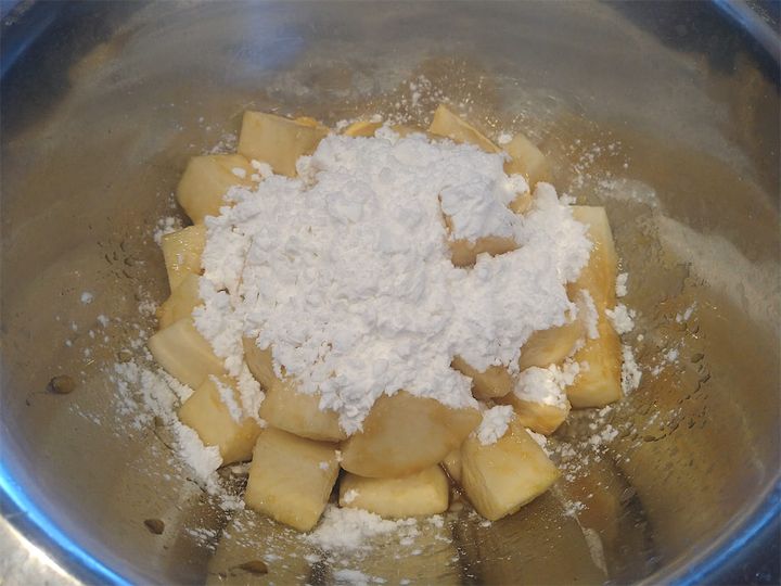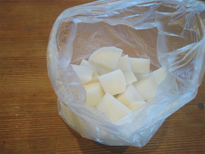 3. ボウルに2の大根と片栗粉を入れて、まんべんなくまぶす。