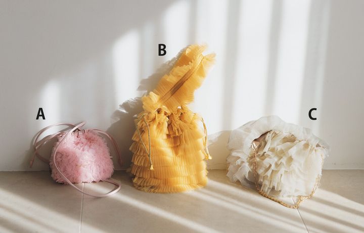 3. シンプルコーデのアクセントに大活躍!たっぷりチュールの映えバッグ3選
