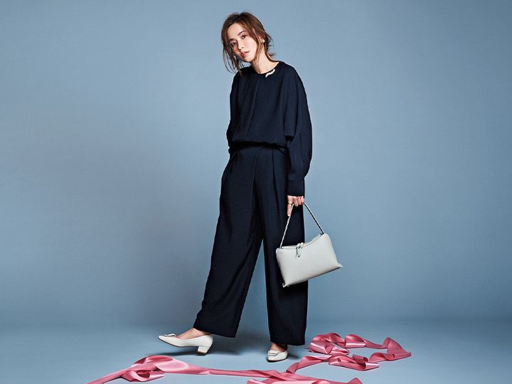 上品なドルマンスリーブで抜け感がありながら、袖口カフスでフォーマル感は死守。前身頃にタックを重ねたラップパンツは、普段着コーデも新鮮に更新してくれます。