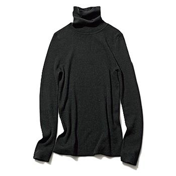 「これさえあればうまくいく」と思わせてくれる、スリムな黒のタートルネックニット。その理由は、ゆるみをおさえ、キレイに整え、気になるテイストも許容する黒ニットの中でも万能な調整力があるから。1つで何役もこなせる底力をフル稼働させて、重ねないとやっていけない時期をスマートに乗り切って。