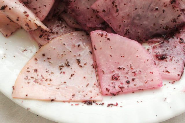 赤かぶかと思うほど色鮮やか!赤じそとレモンの軽い酸味が大根にしっかり
