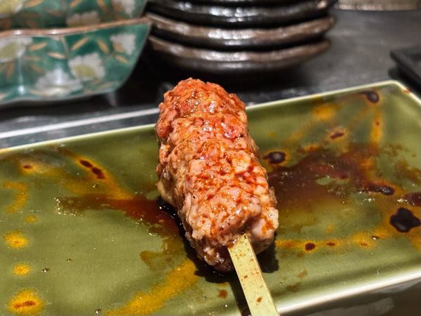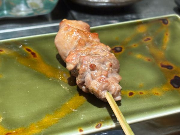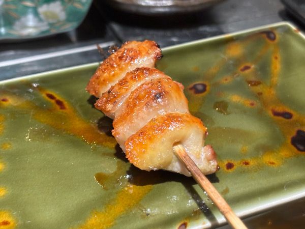 お肉は、静岡県産の「一黒しゃも」と神奈川県産の「滋黒軍鶏」を日替わりで使われているそうで、この日は「一黒しゃも」の雄。鶏の種類、雄か雌か、部位によって焼き方や塩加減を変えて、鶏肉の美味しさを最大限引き出すことを心がけていらっしゃるとのこと。どれも美味しいはずですね。