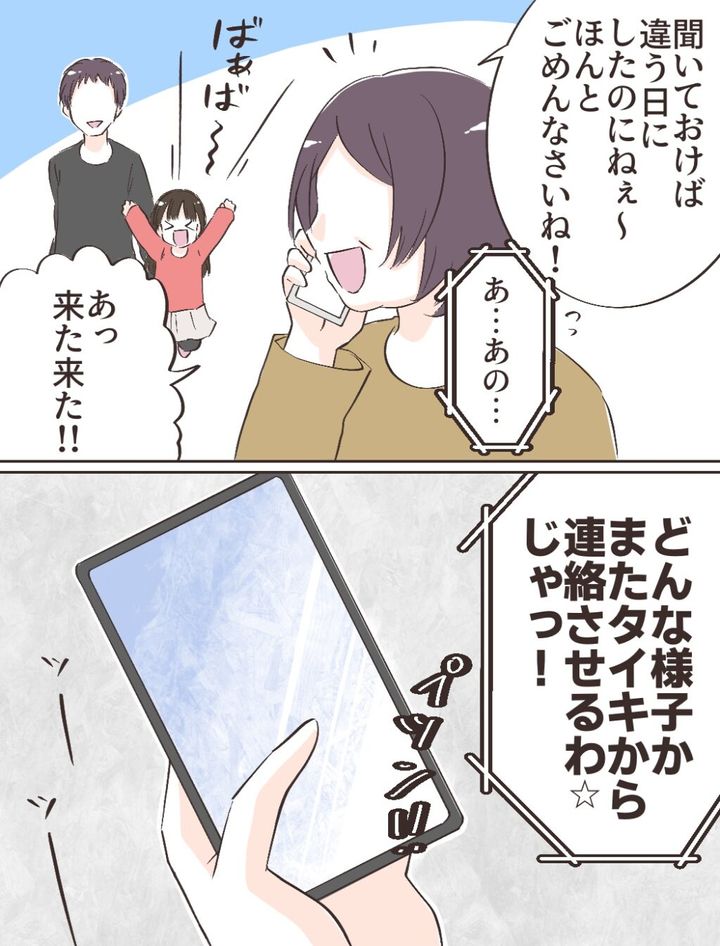 「聞いておけば違う日にしたのにねぇ~。ほんとごめんなさいね!」「どんな様子かまたタイキから連絡させるわ。じゃっ!」一方的にしゃべって、義母は電話を切りました。